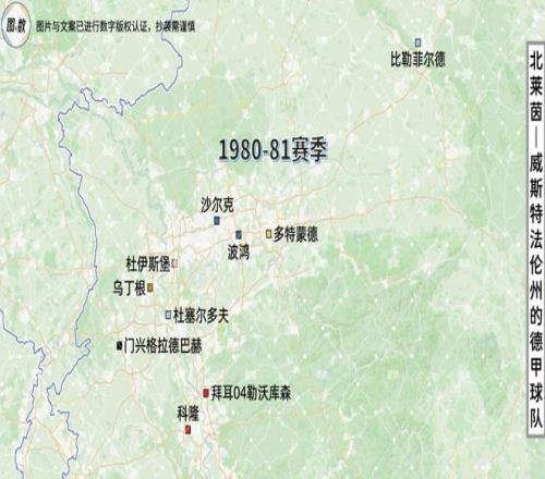 在柏林墻倒塌之前的1980-81賽季,北威州有多達10支球隊在參加德甲或者說西德德甲,占全國的一半兒還多(全國共18支德甲球隊),他們是科隆、比勒菲爾德、勒沃庫森、烏丁根、波鴻、多特蒙德、門興格拉德巴赫、杜塞爾多夫、杜伊斯堡和沙爾克。